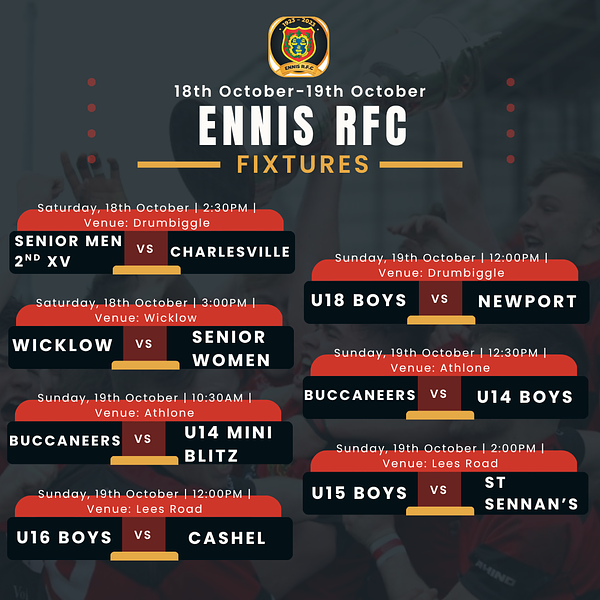 Fixtures for the busy weekend 11th-12th of October. Go...