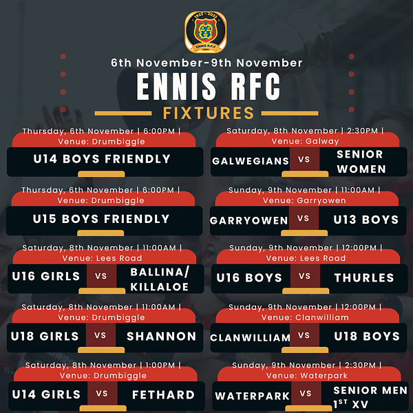 Fixtures for the weekend 1st-2nd November. Support is ...